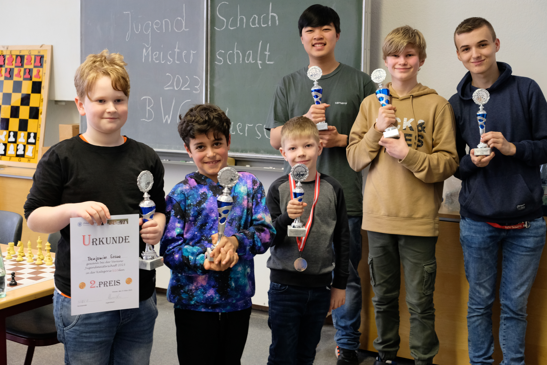 Am 31.3.2023 wurde unsere erste Jugendmeisterschaft für die im Oktober 2022 gegründete Kinder- und Jugendabteilung ausgetragen. In dem 5-rundigen Turnier nach Schweizer System mit jeweils 15 Minuten Bedenkzeit für jeden Spieler gingen 14 Kinder und Jugendliche im Alter zwischen 7 und 17 Jahren an den Start.
