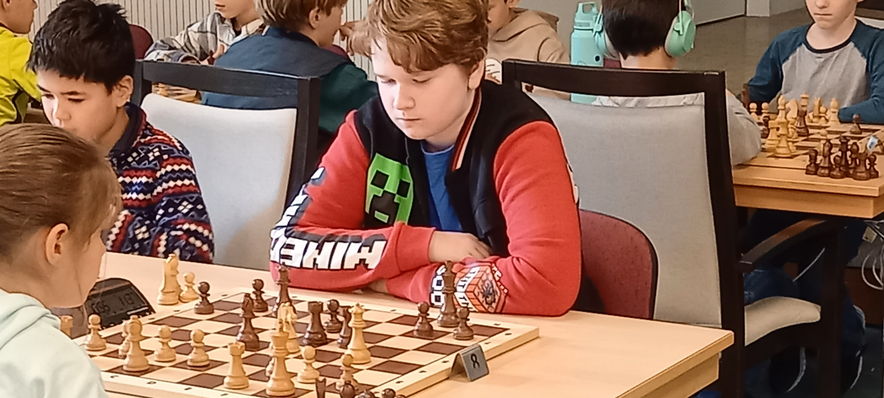 Jonas – eigentlich noch U10-Spieler – begeisterte mich heute durch sein ausdauerndes Spiel. Ein Beispiel hierfür war, dass er und sein Gegner aus Hochneukirch (auch noch U10) in der letzten Runde (in der es für viele Teilnehmenden um Platzierungen geht und gerade auch in den höheren Altersklassen lange gespielt wird) am letzten Brett der U12 die allerletzten Wettkämpfer am heutigen Tag waren. Alle anderen Partien in allen Altersklassen waren schon längst beendet, da kämpften beide noch um den Sieg. Schön, dass es am Ende Remis ausging, nachdem beide mehrfach Gewinnmöglichkeiten übersahen (am Ende eines so langen Tages absolut verständlich, dass die Konzentration nachlässt). Toll gespielt, Jonas! Insgesamt erkämpfte sich Jonas 1,5 Punkte (ohne Freilos). Er gab nie auf und startete in jede Runde motiviert. Einfach klasse! Weiter so, Jonas.
