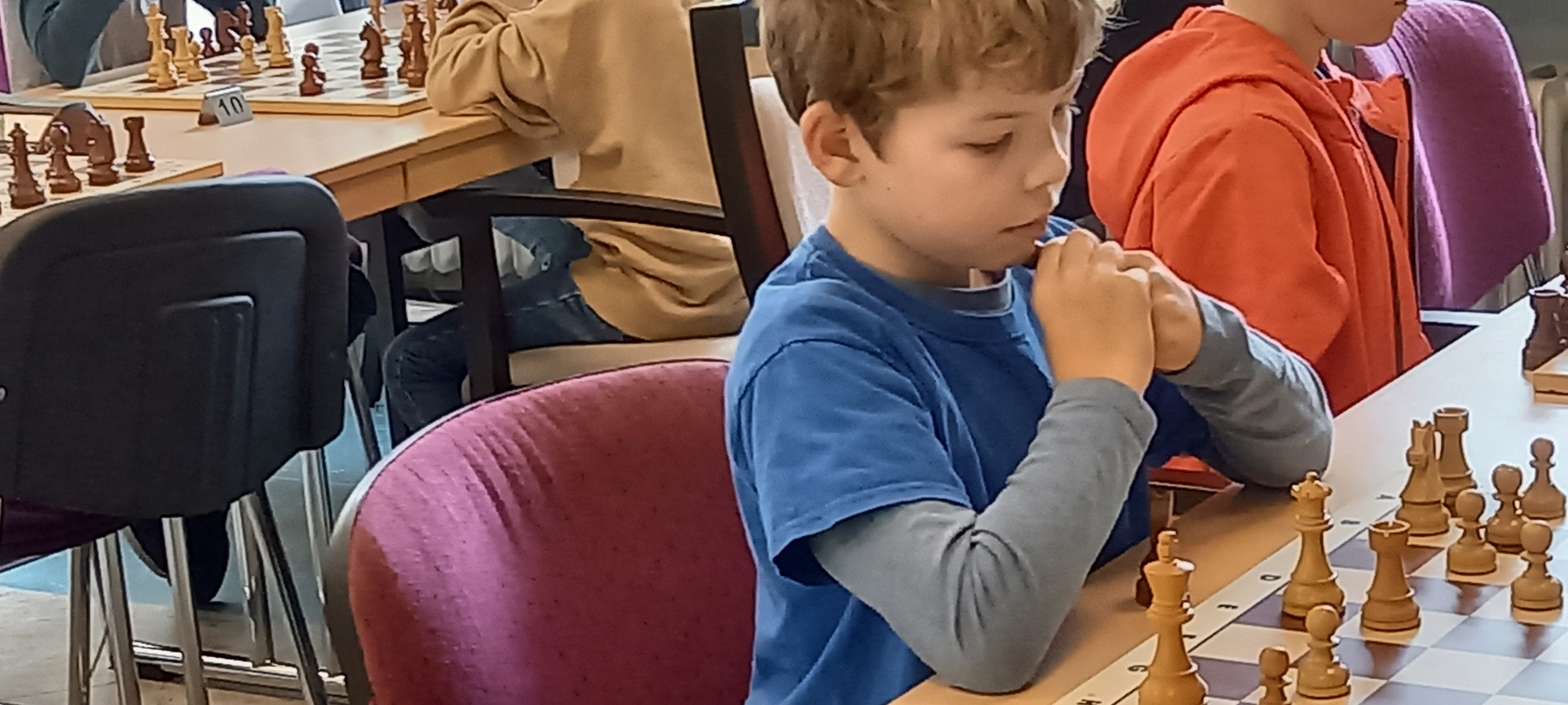 Jonas – eigentlich noch U10-Spieler –  begeisterte mich heute durch sein ausdauerndes Spiel. Ein  Beispiel  hierfür war, dass er und sein Gegner aus Hochneukirch (auch noch U10) in der letzten Runde (in der es für viele Teilnehmenden um Platzierungen geht und gerade auch in den höheren Altersklassen lange gespielt wird) am letzten Brett der U12 die allerletzten Wettkämpfer am heutigen Tag waren. Alle anderen Partien in allen Altersklassen waren schon längst beendet, da kämpften beide noch um den Sieg. Schön, dass es am Ende Remis ausging, nachdem beide mehrfach Gewinnmöglichkeiten übersahen (am Ende eines so langen Tages absolut verständlich, dass die Konzentration nachlässt). Toll gespielt, Jonas! Insgesamt erkämpfte sich Jonas 1,5 Punkte (ohne Freilos). Er gab nie auf und startete in jede Runde motiviert. Einfach klasse! Weiter so, Jonas.