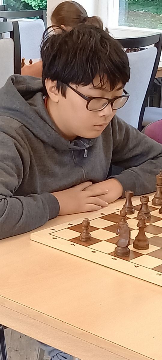 Ian spielte heute gleich in der ersten Runde ein phantastisches Schach gegen eine starke Gegnerin. Zum Ende des Spiels hatte er Zeitvorteil (Ian noch 5 Minuten, seine Gegnerin die Hälfte). Leider vergaß dann Ian auf die Uhr zu schauen und überlegte zu lange, anstatt einfache Züge zu machen und am Ende verlor er nach Zeit. Das war nicht nur sehr schade, sondern hatte offensichtlich auch seine ganze Kraft und Konzentration beansprucht. Nach diesem Spiel lief leider nicht mehr viel. In der 5. Runde dann endlich ein Freilos und in der 6. Runde dann ein Sieg. Schade auch für Ian, dass er heute aus den 3 vereinsinternen Duellen nie als Sieger hervorgehen konnte – das haben wir auch schon anders gesehen. Kopf hoch, Ian, das kannst du schon viel besser und wirst uns das auch schon bald zeigen! Ich bin mir da ganz sicher!