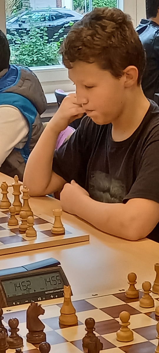 Ian spielte heute gleich in der ersten Runde ein phantastisches Schach gegen eine starke Gegnerin. Zum Ende des Spiels hatte er Zeitvorteil (Ian noch 5 Minuten, seine Gegnerin die Hälfte). Leider vergaß dann Ian auf die Uhr zu schauen und überlegte zu lange, anstatt einfache Züge zu machen und am Ende verlor er nach Zeit. Das war nicht nur sehr schade, sondern hatte offensichtlich auch seine ganze Kraft und Konzentration beansprucht. Nach diesem Spiel lief leider nicht mehr viel. In der 5. Runde dann endlich ein Freilos und in der 6. Runde dann ein Sieg. Schade auch für Ian, dass er heute aus den 3 vereinsinternen Duellen nie als Sieger hervorgehen konnte – das haben wir auch schon anders gesehen. Kopf hoch, Ian, das kannst du schon viel besser und wirst uns das auch schon bald zeigen! Ich bin mir da ganz sicher!