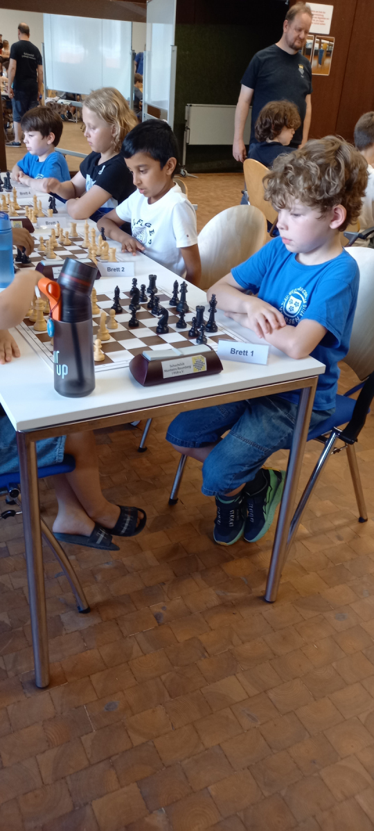 Für unseren jüngsten Nachwuchs nahmen diesmal Konstantin Klipert, Leon und Jonas Pempelfort, die bereits über Turniererfahrung verfügen und Till Rönsberg, Arnon Basil und Lukas Barchanowitz, die alle 3 ihr allererstes Schachturnier bestritten, teil. Die Mannschaften spielten mit jeweils 4 Spielern in 7 Runden. Da wir in diesem Jahr 6 Spieler dabei hatten, konnten wir regelmäßig durchwechseln, so dass jeder mindestens 2mal pausieren konnte.